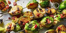 | Savory Grilled Brussels Sprouts - Recipe #19098 - Foodgeeks olive oil, pepper, mustard powder, garlic, brussels sprout, salt Try this recipe for Savory Grilled Brussels Sprouts on Foodgeeks.com Soak small wooden skewers in water 30 minutes ahead of time. Trim stem ends of sprouts and cut a small x into the bottom if they ar...