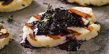 | Grilled Halloumi Cheese with Blueberry-Balsamic Jam Recipe | EatingWell halloumi cheese, thyme, pepper, blueberry, balsamic vinegar, salt, honey, lemon juice Halloumi, a firm Greek cheese, can be cooked on the grill or in a skillet without melting all over the place. In this healthy appetizer recipe, it's paired with tangy and sweet blueberry jam. The ...