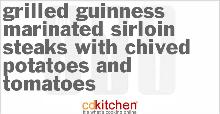 | Grilled Guinness-Marinated Sirloin Steaks With Chived Potatoes And Tomatoes Recipe | CDKitchen.com butter, beef sirloin steak, chicken stock, olive oil, thyme, pepper, peppercorn, chives, bay leaf, potato, garlic, tomato, worcestershire sauce, salt, stout A recipe for Grilled Guinness-Marinated Sirloin Steaks With Chived Potatoes And Tomatoes made with Guinness stout, chicken stock, fresh thyme, Worcestershire, peppercorns, bay leaf For Marinade: Combi...