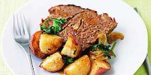 | Grilled Meat Loaf And Potatoes Recipe by fast.grill | ifood.tv green bell pepper, ground beef, potato, onion, eggs, steak sauce, parmesan cheese, bread crumbs, vegetable fat spread In large bowl, combine ground beef, 1/4 cup steak sauce, bread crumbs, egg, pepper and onion. Divide mixture and shape into 4 (4-inch) oval loaves. In small bowl, combine remaining steak sauce and m...