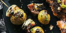 | Grilled Potato, Onion, and Bacon Skewers Recipe | MyRecipes olive oil, pepper, parsley, potato, onion, bacon, salt Crisp-edged bacon, starchy potatoes, and juicy onions together make an unbeatable side for just about any summer dish. The recipe, by Greg Denton and Gabrielle Quiñónez Denton of Ox restaura...