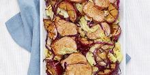 | Grilled Plum and Pork Salad pork loin, hot sauce, canola oil, plum, garlic, cabbage, salt, brown sugar This crunchy, savory salad gets an added sweetness from brown sugar and plums. Step 1 Brush pork tenderloin with canola oil; sprinkle with 1/4 teaspoon salt. Grill on medium-high, covered, 10 minutes,...