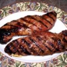 | Grilled Pork Chops Recipe - Food.com pork chop, sesame seed oil, ginger root, red wine vinegar, soy sauce, maple syrup I came across this recipe while looking for interesting grilled recipes. Marinating time is included with prep time (6 hours). Recipe source: local newspaper Serving Size: 1 (256) g Servings Per Reci...