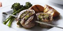 | Pesto-Pork Pinwheels with Grilled Peaches Recipe | EatingWell pork loin, pesto, olive oil, pepper, peach, balsamic vinegar, salt, bread crumbs Slicing the pesto-and-breadcrumb-stuffed pork before skewering helps these pinwheels cook quickly and brown evenly. Serve this with grilled or roasted broccolini and farro for a healthy dinner. Instru...