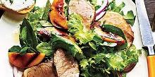 | Pork Tenderloin Salad and Grilled Nectarines Recipe | MyRecipes pork loin, red onion, salad, olive oil, cooking spray, tarragon, pepper, nectarine, garlic, balsamic vinegar, salt, maple syrup For a fast summertime weeknight dinner, prepare a grilled meal of Pork Tenderloin Salad and Grilled Nectarines. Grilling heightens the sweetness and flavor of the nectarines. Instructions Checklist S...