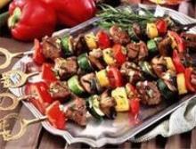 | Grilled Turkey, Portabella Mushrooms and Vegetable Kebabs | Diabetic Recipe - Diabetic Gourmet Magaz red bell pepper, olive oil, tarragon, rosemary, portobello mushroom, yellow squash, spring onion, garlic, zucchini/courgette, turkey, worcestershire sauce, balsamic vinegar Recipe for Grilled Turkey, Portabella Mushrooms and Vegetable Kebabs from the diabetic recipe archive at Diabetic Gourmet Magazine with nutritional info for diabetes meal planning. Place turkey cubes ...