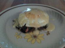 | Grilled Portabellas Benedict Recipe - Food.com feta cheese, olive oil, pepper, portobello mushroom, onion, garlic, sun dried tomatoes, spinach, eggs, bacon, salt, vegetable fat spread, milk This is a twist on eggs benedict where you substitute a portabella mushroom for the english muffin, stuff it with sun dried tomatoes, feta cheese and baby spinach. This dish is cooked on the grill, ea...