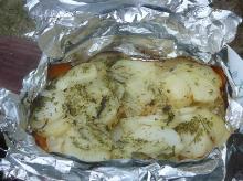 | Foil Packet Grilled Potatoes Recipe - Food.com olive oil, dried garlic, potato, salt, seasoning, parmesan cheese I use small to medium size potatoes. You can either sprinkle real shredded parmesan cheese on these packets during the last five minutes, or just stir in a teaspoon or so of the dry grated stuff in th...