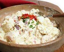 | Grilled Italian-Style Potato Salad Recipe - Food.com red potato, italian dressing, spring onion, garlic, bacon, mayonnaise, water Serving Size: 1 (143) g Servings Per Recipe: 8 AMT. PER SERVING % DAILY VALUE Calories: 192.8 Calories from Fat 87 g 46 % Total Fat 9.8 g 15 % Saturated Fat 2.4 g 12 % Cholesterol 9.6 mg 3 % S...