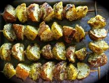 | Grilled Skewered Red Potatoes Recipe - Food.com red potato, chicken stock, rosemary, dried garlic, mayonnaise, white wine I adore potatoes on the grill. Prep time includes marinating time. Serving Size: 1 (121) g Servings Per Recipe: 6 AMT. PER SERVING % DAILY VALUE Calories: 127.5 Calories from Fat 1 g 1 % Total Fa...