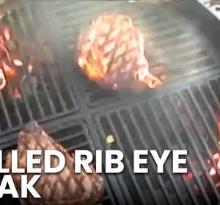 | Grilled Rib Eye Steak Recipe Video by BallisticBBQ | ifood.tv beef ribeye steak, olive oil, pepper, salt I grilled up two nice Prime Rib Eye steaks on my Weber Grill. GETTING READY 1. Prepare the grill with charcoals. MAKING 2. Drizzle the steaks with olive oil and coat evenly. 3. Season with salt an...