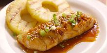 Grilled Salmon Teriyaki rice wine, cornstarch, sesame seed, ginger root, pineapple, spring onion, garlic, salmon, soy sauce, mirin, honey, water Love grilled salmon? This salmon teriyaki from Delish.com is the best. Make the teriyaki sauce. In a small saucepan over medium-high heat, combine sweet rice wine, soy sauce, honey, garlic and ginger...