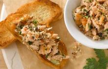 | Grilled Salmon Crostini - Dash™ olive oil, parsley, coriander, caper, basil, lemon, spring onion, salmon, bread In a medium bowl, combine the salmon with scallions, lemon juice, capers, herbs, olive oil and the Original Blend. Stir thoroughly. Lay out the toasted bread slices and pile two tablespoons of the s...