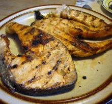 | Easy and Delicious Grilled Teriyaki Salmon Steaks Recipe - Food.com mustard powder, salmon, soy sauce, brown sugar Only three ingredients makes these salmon steaks simple to prepare and so delicious. Prepare ahead, they need to marinate for 1-1/2 hours before grilling, you may also broil these in the oven. Serving...