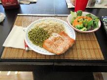 | Grilled Salmon With Rosemary Recipe - Food.com olive oil, rosemary, garlic, salmon, lemon juice South Beach Diet Phase 1. Serve with steamed asparagus and a nice, green salad. Instructions for broiling, too. Serving Size: 1 (120) g Servings Per Recipe: 4 AMT. PER SERVING % DAILY VALUE Calorie...