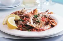 | Mixed seafood grill with tomato vinaigrette - Recipes - delicious.com.au dressing, olive oil, parsley, lemon, garlic, tomato, prawn, tuna, lemon juice Eating seafood is such a holiday thing - make the most of fresh fish with this grill. 1. For the dressing, whisk the tomato, garlic, lemon juice and olive oil until thickened, then season to taste w...