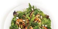 | Shrimp with Grilled Nectarines Recipe vegetables, almond, basil, avocado, nectarine, shrimp, vinaigrette Top grilled shrimp and nectarines with a quick vinaigrette for a simple, delicious summer salad. Place nectarines on grill alongside Spicy Grilled Shrimp ; cook 4 minutes, turning once. In large bowl...