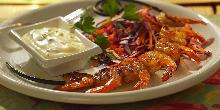 | Grilled Shrimp "Souvlaki" Recipe | MyRecipes red onion, olive oil, pepper, oregano, dill, garlic, tomato, cucumber, lettuce, shrimp, lemon juice, yogurt (plain) Prep: 20 minutes; Cook: 15 minutes; Marinate: 10 minutes. Instructions Checklist Step 1 Preheat grill. Advertisement Step 2 Rinse shrimp, and pat dry. Stir together 2 tablespoons lemon juice, 1 t...