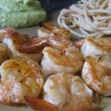 Southwestern Grilled Shrimp Recipe olive oil, pepper, jalapeno, avocado, garlic, tomatillo, shrimp, soy sauce, salt, sugar, lime juice, water From Cooking Light. Shrimp needs to marinate a couple of hours, so plan ahead! Peel and devein shrimp; place in a heavy-duty, zip-top plastic bag. Combine 1 T lime juice and next 4 ingredients, and po...