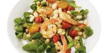 | Grilled Shrimp White-Bean Salad Recipe white bean, lemon peel, olive oil, pepper, garlic, tomato, shrimp, salt, lemon juice Lemon juice and lemon zest add a clean, bright finish to this simple grilled shrimp salad. Pat shrimp dry, then toss with 1 Tbsp olive oil, half the garlic, and kosher salt and pepper to taste. In a ...