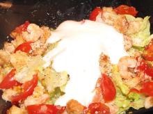 | Caesar Salad With Grilled Shrimp Recipe - Food.com olive oil, pepper, garlic, sun dried tomatoes, lettuce, shrimp, anchovy, mustard, worcestershire sauce, salt, parmesan cheese, lemon juice This is a Caesar Salad I pieced together from all over the place. Enjoy! Serving Size: 1 (450) g Servings Per Recipe: 4 AMT. PER SERVING % DAILY VALUE Calories: 571.6 Calories from Fat 349 g 61 % ...