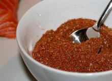 Spiced Grilled Salmon Recipe | SparkRecipes pepper, paprika, cloves, cayenne pepper, cinnamon, cumin, cardamom, dried ginger, salmon, salt, brown sugar Spice your salmon up with this spice rub Instructions 1. Preheat the grill. 2. To prepare the spice rub, combine all ingredients in a small bowl. 3. Rub spice mixture over top of salmon. Place salmon ...