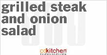 | Grilled Steak and Onion Salad Recipe | CDKitchen.com beef sirloin steak, red lettuce, olive oil, tarragon, onion, lettuce, mustard, salt, lemon juice A recipe for Grilled Steak and Onion Salad made with beef sirloin steak, onion, romaine lettuce, lettuce, baby field greens, olive oil Grill the steak for 4 1/4 to 5 minutes or longer for desired done...