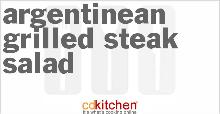 | Argentinean Grilled Steak Salad Recipe | CDKitchen.com beef flank steak, hot sauce, vegetables, olive oil, parsley, oregano, garlic, lettuce, red wine vinegar, mozzarella cheese A recipe for Argentinean Grilled Steak Salad made with Italian parsley, fresh oregano, garlic, olive oil, red wine vinegar, hot pepper sauce Prepare barbecue to medium-high heat. Combine parsley, oreg...