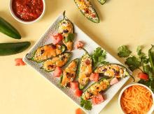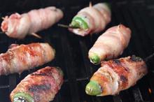| Grilled Stuffed Jalapeno Poppers Recipe | MyRecipes cooking spray, coriander leaf, jalapeno, spring onion, garlic, tomato, bacon, salt, cheddar cheese, cream cheese, lime juice Searching for that perfect, crowd-pleasing appetizer for you next get-together? Look no further than these stuffed jalapeño poppers. The rich and creamy combination of bacon, cream cheese, and ch...