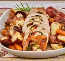 | Grilled Stuffed Pork Tenderloin With Apricot Preserves Recipe Video by Cooking.Outdoors | ifood.tv red potato, pork loin, gouda cheese, cherry pepper, apricot jam/preserve, olive oil, rosemary, pepper, olive, carrot, onion, garlic, sun dried tomatoes, spinach, salt Grilling a Stuffed Pork tenderloin with Apricot Preserves. The perfect pairing of tart, savory, and smokey with salty and sweet. Roasted red potatoes, onions and carrot are served as a side dish. All ...