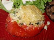 | Grilled Stuffed Tomatoes Recipe - Food.com orzo pasta, goat's cheese, olive oil, pepper, basil, spring onion, tomato, salt, parmesan cheese What a wonderful change of pace from the regular sides when we are grilling! These taste soooo good! This is from Down Home With The Neelys. Serving Size: 1 (278) g Servings Per Recipe: 6 AMT. PER S...