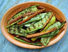 Grilled Summer Veggies Recipe green pepper, parsley, summer squash, mushrooms, carrot, onion, celery, zucchini/courgette, balsamic vinegar, salad dressing, cajun seasoning, seasoning A nice summer mix of fresh In a large resealable plastic bag, combine the salad dressing, vinegar, parsley, lemon-pepper and Cajun seasoning. Add the vegetables; seal bag and turn to coat. Let stand...