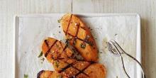 | Grilled Chicken With Sweet Potato Sauce Recipe chicken breast, red bell pepper, chicken stock, oil, pecan, pepper, parsley, mace, cinnamon, sweet potato, onion, celery, salt, honey, apple cider What the heck happen here!!!! oh well. i will try one recipes, if not many comments i may be gone!, but this is good In a saucepan over medium heat, heat the oil. Add the celery and onion and saute fo...