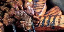 | Marrakech Grilled Steak & Sweet Potatoes Recipe | EatingWell red onion, beef steak, orange peel, canola oil, coriander seed, cayenne pepper, cinnamon, cumin, dried ginger, allspice, sweet potato, salt Here we grill spice-rubbed strip steak to serve along sweet potatoes and onions cooked in a foil packet alongside it. Serve with steamed spinach. Instructions Checklist Step 1 Preheat grill to high....