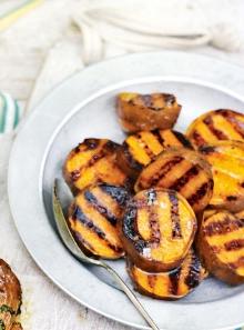 | Grilled Sweet Potatoes - Sweet Potato Recipes olive oil, pepper, parsley, sweet potato, salt We steam and slice sweet potatoes and then give them a turn on the grill to create this deliciously unexpected side dish. Step 1 Prepare outdoor grill for covered, direct grilling on medium. Step 2 I...