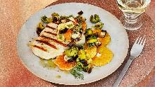 | Grilled Swordfish with Charred Leeks Recipe | Bon Appetit swordfish, olive oil, pepper, dill, orange, olive, leek, white wine vinegar, salt Firm, thick swordfish steaks can handle being cooked over medium-high heat like a steak. The charred leeks that go with it are smoky on the outside and sweet and juicy inside. Step 1 Prepare a grill ...