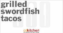 | Grilled Swordfish Tacos Recipe | CDKitchen.com swordfish, orange peel, olive oil, oregano, coriander leaf, jalapeno, spring onion, garlic, tomatillo, tomato, lettuce, halibut, salt, tortilla, orange juice, lemon juice A 5-star recipe for Grilled Swordfish Tacos made with swordfish or halibut fillet, orange zest, orange juice, lemon juice, fresh oregano Marinade: Combine swordfish and marinade ingredients in a large...