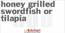 | Honey Grilled SwordFish or Tilapia Recipe | CDKitchen.com swordfish, hoisin sauce, ginger root, jalapeno, onion, garlic, tilapia, soy sauce, honey, lime juice A recipe for Honey Grilled SwordFish or Tilapia made with honey, onion, lime juice, soy sauce, hoisin sauce, garlic, jalapeno pepper, fresh ginger Combine all ingredients except fish; mix well. Marina...