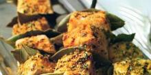 | Grilled Swordfish Kabobs Recipe | MyRecipes swordfish, olive oil, pepper, parsley, bay leaf, salt, bread crumbs Bay leaves interspersed with chunks of swordfish in these bread-crumb-coated kabobs add another taste dimension to the fish as it cooks. Tuna or salmon would benefit from the same treatment. Be sure t...