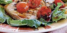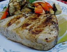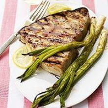 | Grilled Swordfish with Tomato-Molasses Dressing Recipe | MyRecipes swordfish, vegetables, coconut oil, cooking banana, pepper, lime, salt Ripe plantains and mixed baby greens are paired with a flaky swordfish fillet. This impressive dish makes a satisfying grilled seafood meal for weeknight family dinners and company alike. Instructions...