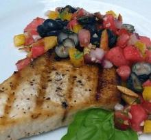 | Swordfish.....bbq Grilled Swordfish Recipe - Food.com swordfish, oil, parsley, jalapeno, dried ginger, pineapple, orange, onion, garlic, sweet pepper, orange juice, lemon juice, lime juice Making fish is so easy and adding a fruit salsa makes this recipe just plain excellent! I make this on the grill most of the time but you can use the broiler or oven. Serving Size: 1 (210) g Servings...