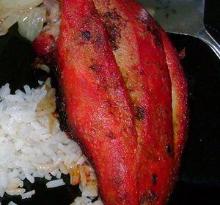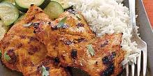 | Grilled Tandoori Chicken Recipe, Whats Cooking America butter, chicken, chili dried/powder, garam masala, ginger root, coriander seed, cumin, garlic, salt, lemon juice, yogurt (plain) Grilled Tandoori Chicken is my favorite dish when we eat Indian food. It is a very refreshing and tasty chicken dish you can make at home with this recipe. Cut up the chicken into 10 pieces (cut breas...