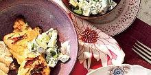 | Grilled Tandoori-Style Chicken with Cool Cucumber Raita from 1001Recipes2Send.com Recipes Database chicken breast, olive oil, tandoori mix, pepper, coriander, cumin, tomato, cucumber, salt, yogurt (plain) 1001Recipes2Send.com, Using a tandoori paste from a jar makes this spicy chicken dish fast and easy. - Thousands of recipes at your fingertips now! Recipes, tips, food related stories, links and more!...