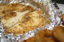 | Grilled Tilapia Recipe | SparkRecipes olive oil, tilapia, old bay seasoning, cajun seasoning Loaded with flavor. Works for cod, monkfish, sole, scallops also. Serves 4 1. Preheat grill 2. Spread oil on both sides of filets 3. Sprinkle with seasonings. 4. Place on hot grill and cook for about ...