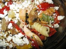 | Roasted Vegetable Pasta Salad With Grilled Chicken Recipe - Food.com chicken breast, feta cheese, red bell pepper, olive oil, pepper, oregano, basil, yellow squash, carrot, onion, garlic, zucchini/courgette, tomato, mustard, balsamic vinegar, salt, pasta, lemon juice I found this recipe on another web site and made it for Sunday night dinner - the family loved it. I wanted to get it posted before I lost the recipe. You could low carb this recipe by omitting the pa...