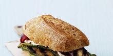 | Grilled Vegetable Sandwiches Recipe sweet onion, red pepper, olive oil, pepper, olive, zucchini/courgette, aubergine/eggplant, spinach, salt, mozzarella cheese A fresh and superfast dinner (or lunch), these grilled vegetable sandwiches cover all the tasty bases. Get your fill with eggplant, zucchini, and sweet onion. Don't forget the olive tapenade! Coat...