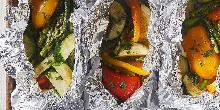 | Grilled Vegetables In Foil Recipe | EatingWell butter, olive oil, pepper, parsley, chives, garlic, asparagus, zucchini/courgette, salt Grilled vegetables in foil is a great recipe to have on hand when camping or cooking over an open fire, but it's also nice on your backyard gas grill too. Here, we cook asparagus, mini peppers and...