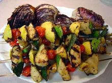 | Grilled Vegetables and Tomato Bread Recipe red onion, yellow/orange pepper, red pepper, olive oil, yellow squash, garlic, zucchini/courgette, tomato, aubergine/eggplant, garden rocket, bread The softened grilled garlic is delicious spread on the tomato bread. Brush garlic and onion slices with oil and place near the edge of a medium-hot grill to cook slowly. Grill for 5 to 10 minutes, tur...
