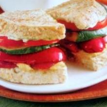 | Grilled Vegetable Sandwiches Recipe red onion, red bell pepper, olive oil, pepper, basil, garlic, zucchini/courgette, tomato, hummus, salt, mayonnaise, cheddar cheese, bread, lemon juice My daughter went off to college and came home a vegetarian. Wow! Now I had to learn to cook vegetarian meals for her. That is not always easy. So, I came up with this vegetable sandwich that she absol...