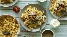 | Ground Turkey Stroganoff Recipe | SparkRecipes cooking wine, ground turkey, cornstarch, pepper, mushrooms, onion, mustard, worcestershire sauce, salt, yogurt (plain), water All from scratch, all low-fat. No cream soup in this recipe. It has a fresh, zippy taste, but be careful on the cooking, as you don't want to overheat the yogurt. 1) Brown ground turkey. Add diced...